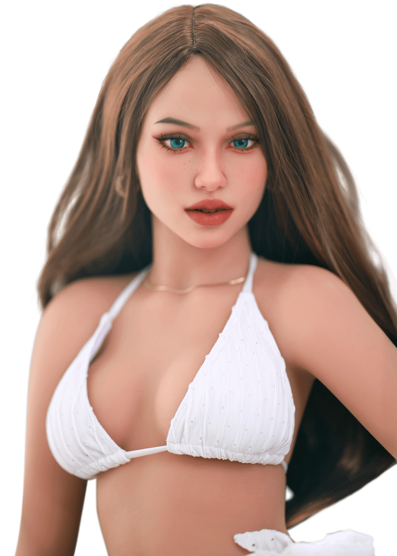 Isabella ist eine Premium-Sexpuppe von DutchDoll, die Eleganz und Verführung perfekt kombiniert. Auf den Fotos trägt sie stilvolle Bikinis, ihr langes braunes Haar fällt locker über ihre schlanken Schultern. Ihre hellblauen Augen ziehen sofort die Aufmerksamkeit auf sich und geben ihr eine charmante, sinnliche Ausstrahlung. Wenn du eine realistische und stilvolle Begleiterin suchst, die Luxus ausstrahlt, ohne übertrieben zu wirken, ist Isabella genau die Richtige für dich.