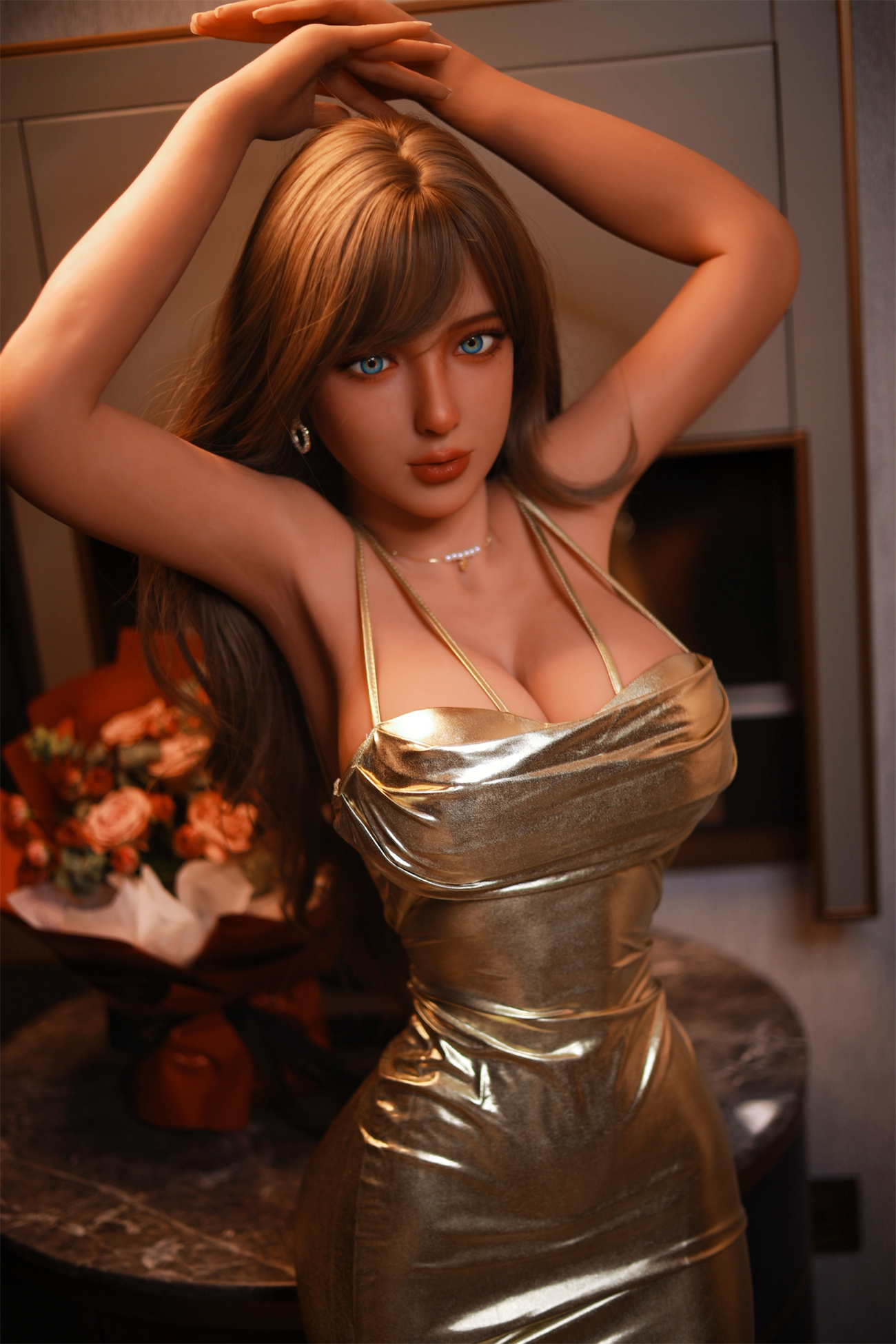 Ist eine schlanke Frau mit dunkelblondem Haar und einem heißen D-Körbchen, die immer für ein Abenteuer zu haben ist, genau das, wovon du träumst? Dann lass Sexpuppe Julie diese Träume für dich wahr werden. Ihr ultrarealistisches Aussehen, ihre Größe von 162 cm und das thermoplastisches Elastomer bieten ein sinnliches Erlebnis jenseits deiner kühnsten Vorstellungen. Drei zugängliche Genussöffnungen mit lebensechtem Aussehen und verlockenden Strukturen machen sie geradezu außergewöhnlich, wobei sich das Material bei jedem Tanz geschmeidig bewegt.